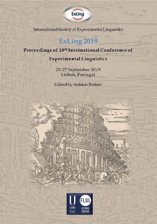 Vol. 10This volume presents the proceedings of ExLing 2019, the 10th International Conference of Experimental Linguistics, held in Lisbon, Portugal, 25–27 September 2019. The first ExLing Conference, originally an International Speech Communication Association (ISCA) ExLing Workshop, took place in Athens in 2006 and has since been hosted in various international locations.